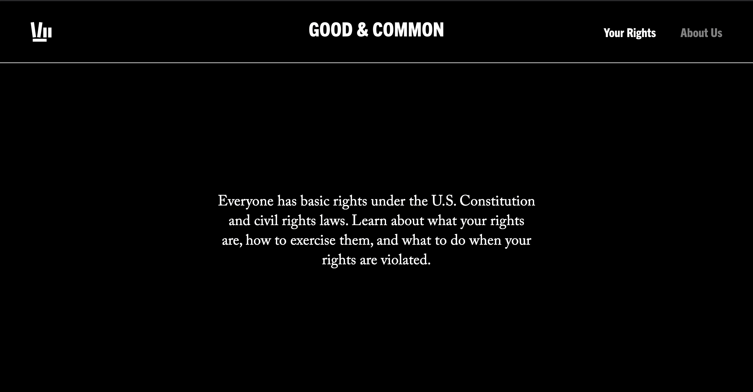 Leveraging the leadership and experience of DeWitt Lacy, a local civil rights attorney, we built a simple web-based platform to publish a repository of straightforward information about basic civil rights. The site highlights important types of interactions with police, and how best to handle them.
