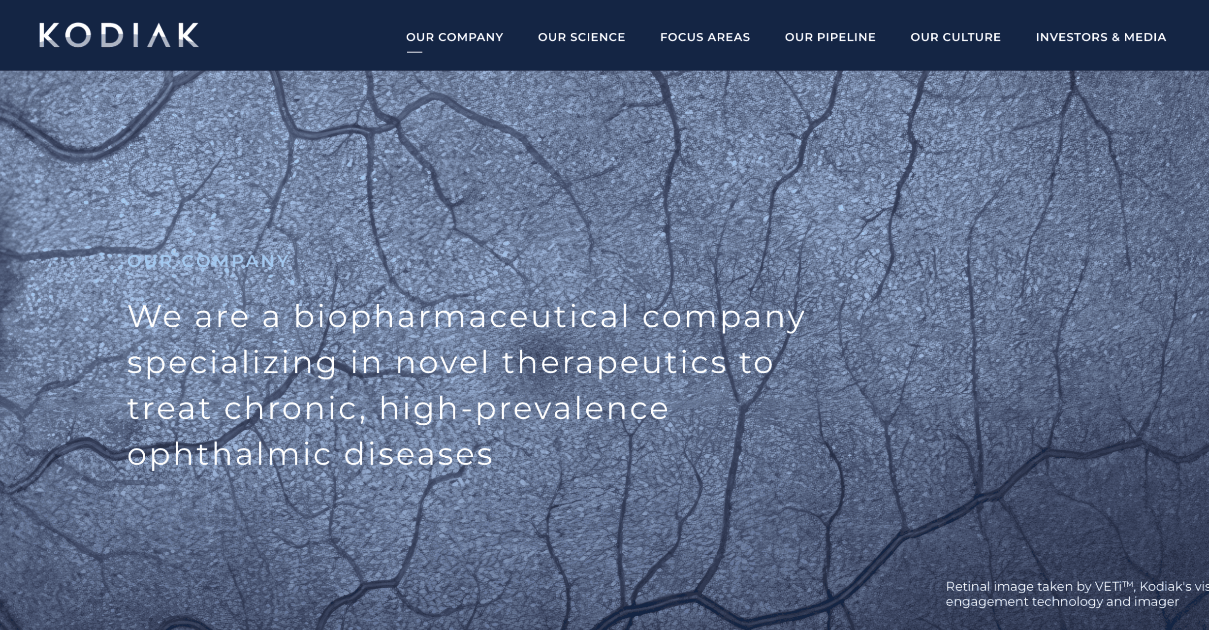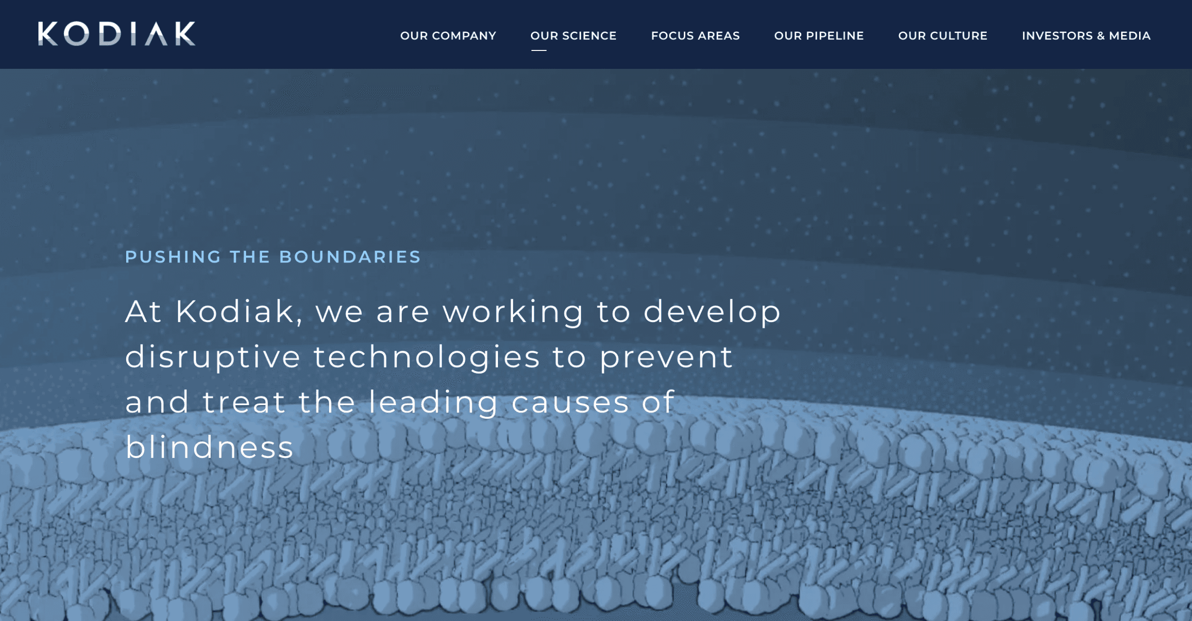 Aleph's work on this project continues to handle Kodiak’s need to constantly update its messaging and content presentation to reflect the progress of ongoing clinical trials and other important developments.