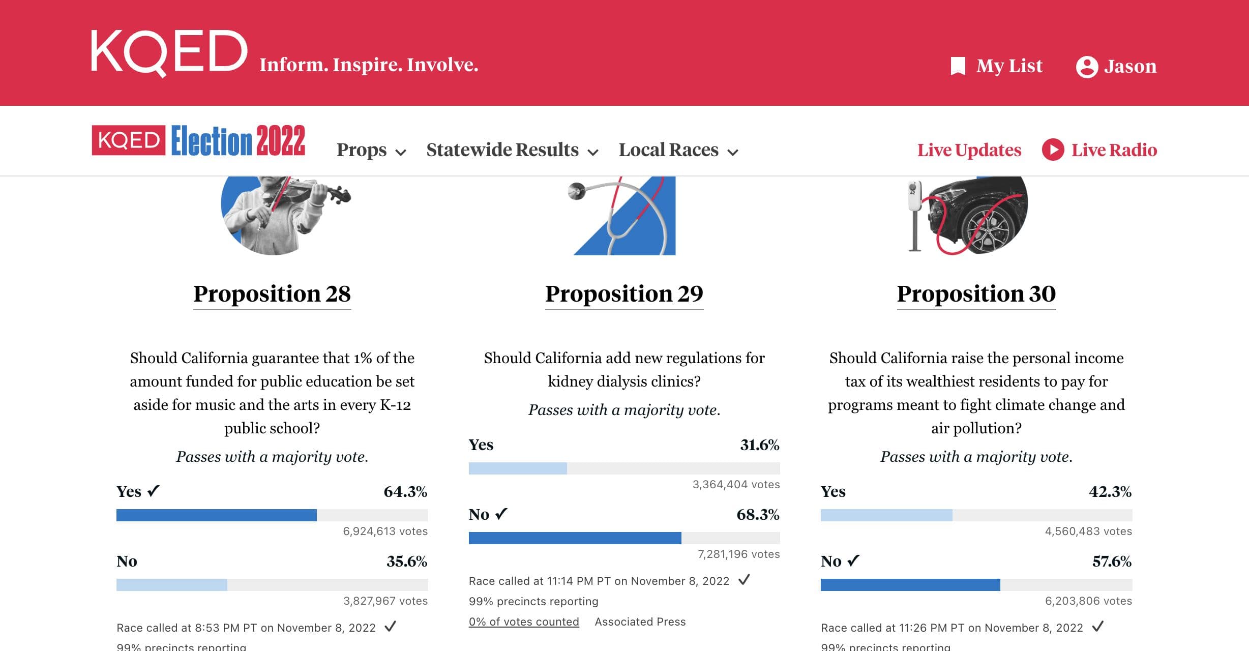 Election returns notwithstanding, the project itself was a transformative moment for KQED and Aleph; The design and technological paradigms we used were a seed of inspiration for a massive upgrade in the making.